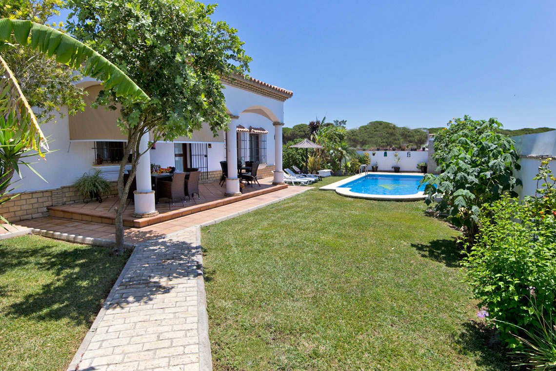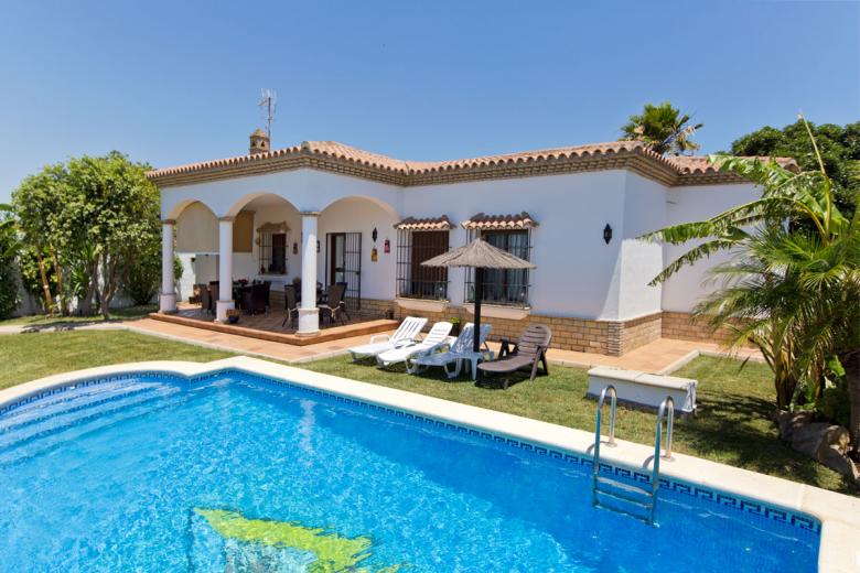 Willkommen in dieser herrlichen Villa in Conil! Die Villa für bis zu 7 Personen hat 3 Schlaf- und 3 Badezimmer. Das Anwesen in ländlicher und ruhiger Umgebung verfügt auf einem 1.000 m2 großen Gartengrundstück über schöne Terrassen und einen 8x5 m großen Privatpool