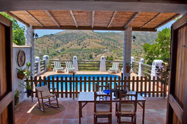 Das schöne Landhaus liegt ruhig auf einem großen Privatgrundstück zwischen Frigiliana und Nerja. Es bietet herrliche Panoramablicke über die malerische Landschaft der Axarquia bis hin zum Meer. Das Ferienhaus für bis zu 6 Personen verfügt über vier Schlafzimmer und zwei Bäder und wurde mit viel Liebe zum Detail erbaut und eingerichtet